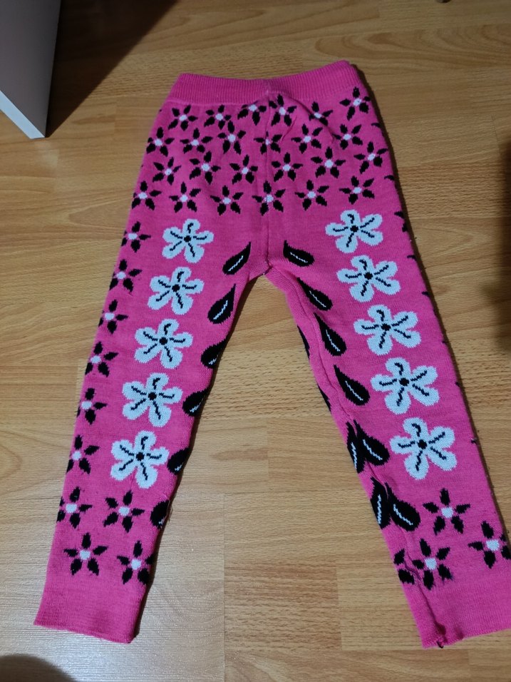 Kız çocukları için renkli çiçek desenli, pembe yumuşak trikodan yapılmış, bohem ve retro tarzda dar kesim tayt. kışın sıcak tutar. sadece iki yerinde minik leke var fotoğrafta parmağınla gösterdiğim yerler. ürün çok renkli ve desenli olduğu için pek fark edilmiyor. belki siz farklı yöntemlerle çıkartabilirsiniz. a kısmında minik bir açılma var ama tamir edilebilir. fotoğraflarını paylaştım. beden etiketi olmadığı için kızımın giydiği yaşı yazıyorum 4 yaşında bir giyerdi. fiyatını uygun tutuyorum.