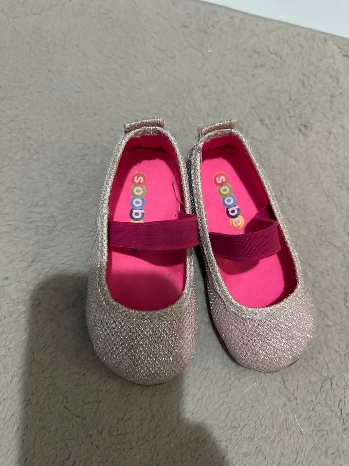 Kız çocuklar için pembe cırt cırtlı babet ayakkabı, gri kauçuk tabanlı. Sade ve trend günlük stil için uygundur. 21 numara