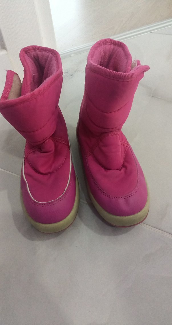 Canlı pembe renkte, cırt cırtlı kız çocuk botları, kauçuk tabanlı ve desensiz sade tasarıma sahip. tertemiz hiçbir sorunu yoktur