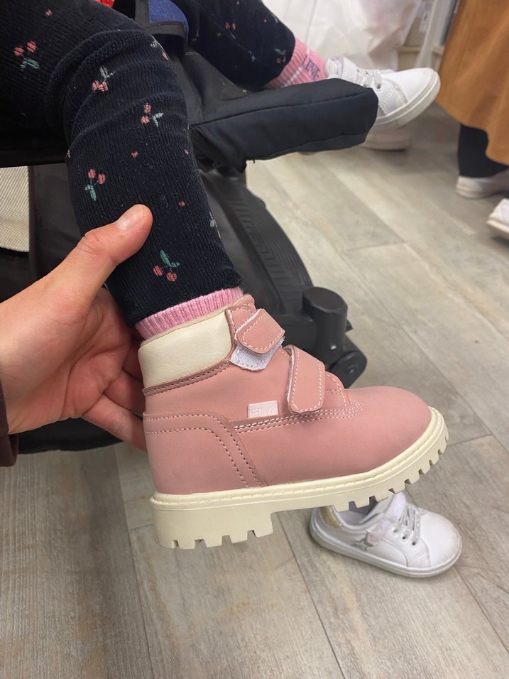 Bu pastel pembe kız çocuk botları, kolay kullanım için cırt cırtlı bantlara ve kauçuk tabana sahiptir, rahat sokak tarzında tasarlanmıştır 22 numaradır