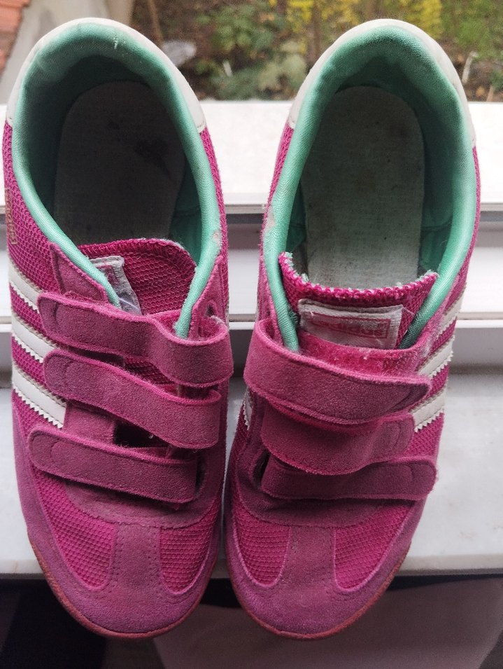 Pembe renkli kız çocuk sneakers, cırt cırtlı bantlar ve kauçuk tabanlı. Renkli ve desensiz tasarımıyla şık ve rahat.