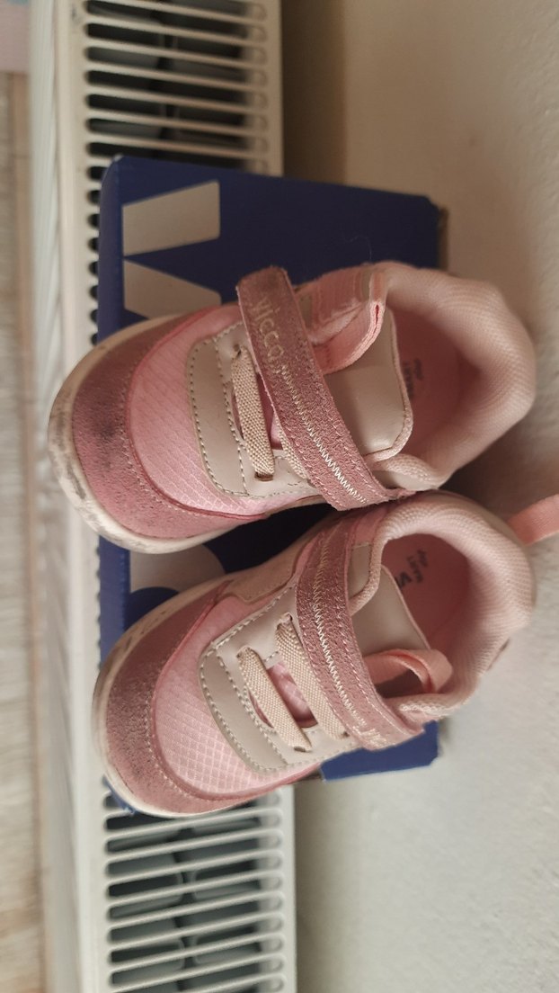 Pastel pembe renkli, cırt cırtlı kız çocuk sneakers. Kauçuk tabanlı, rahat ve sokak stiline uygun ayakkabı. ustu biraz kirlendi yıkayıp gönderirim. tabanlari vs tertemiz hiçbir sorunu yok.