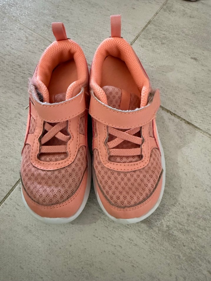 Kız çocukları için pastel turuncu renkte, cırt cırtlı kapama detaylı spor ayakkabılar. Lastik tabanlı ve nefes alabilen file üst kısım içerir. Tertemiz