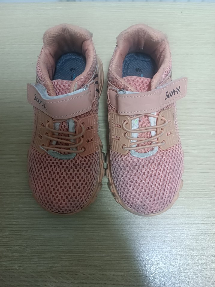 Pembe renkli, pastel yılan desenli, cırt cırtlı ve nefes alan kauçuk malzemeden yapılmış kız çocuk spor ayakkabısı.