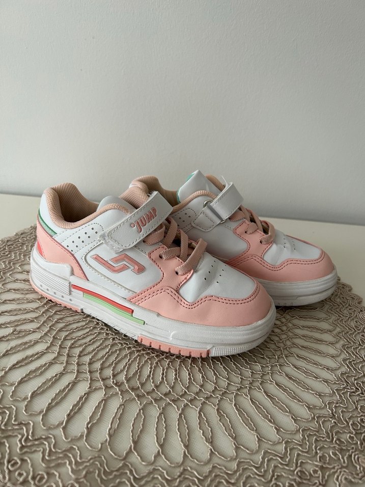 Pastel pembe tonlarda, cırt cırtlı kız çocuk günlük spor ayakkabısı.