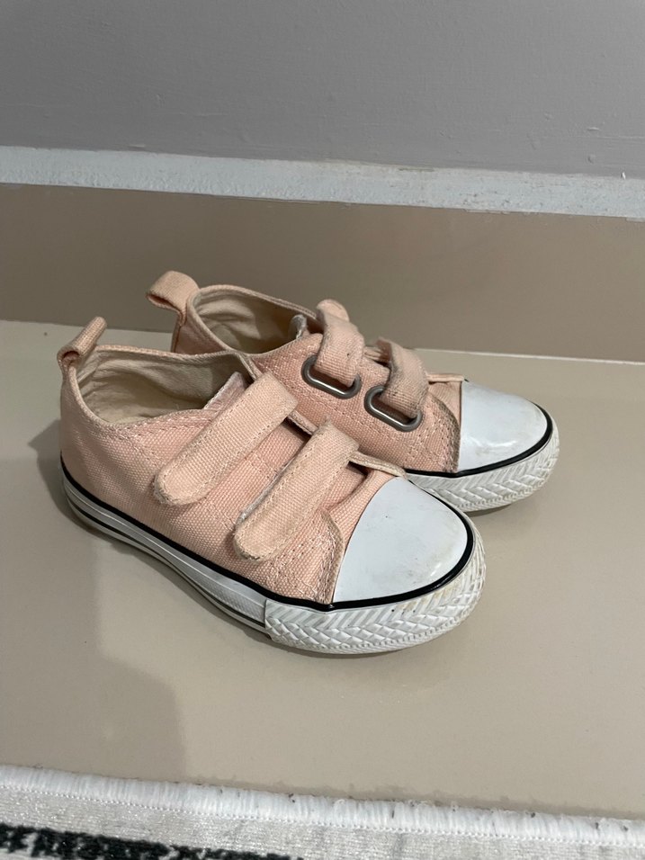Pastel pembe renkte, cırt cırtlı ve kauçuk tabanlı kız çocuk spor ayakkabısı, streetwear tarzında.