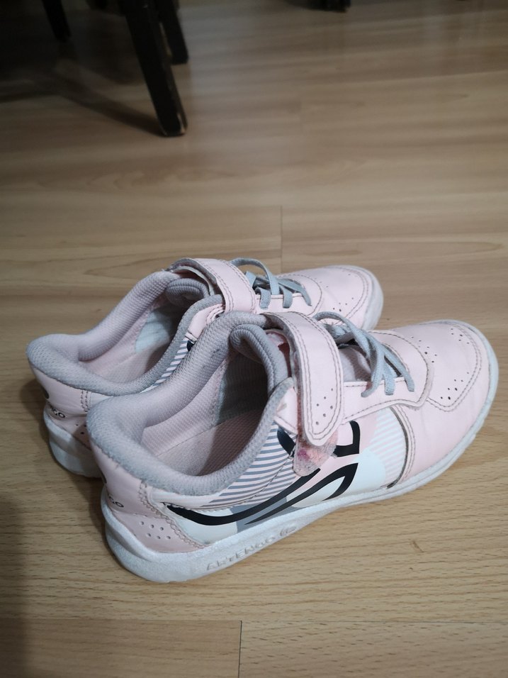 Pastel pembe renkte, cırt cırtlı kız çocuk spor ayakkabısı. Kauçuk tabanlı, desen içermeyen sokak stili rahat bir tasarım sunar.