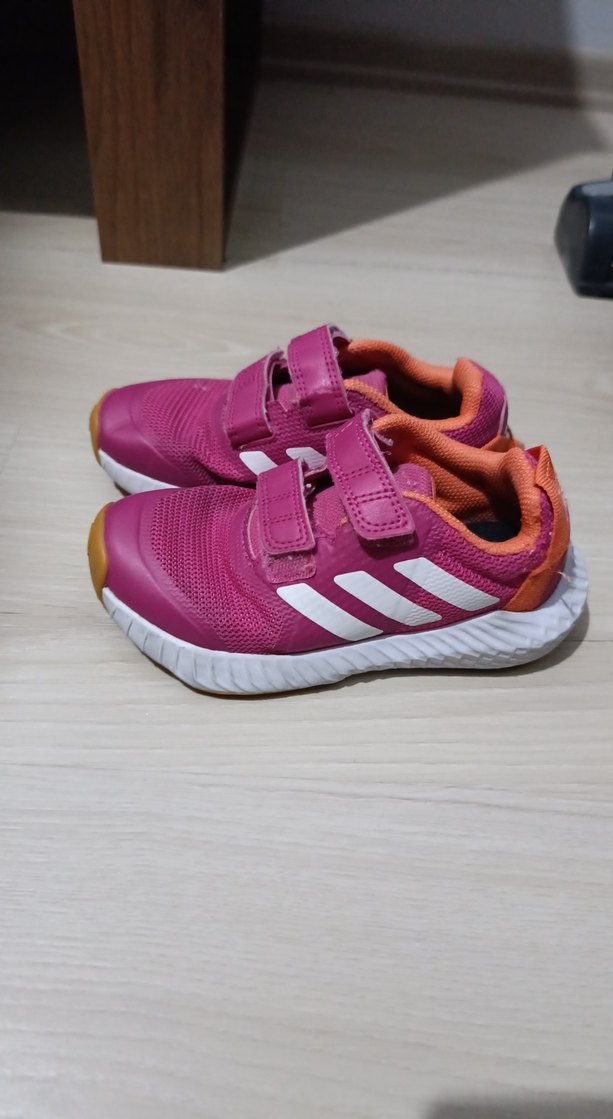 Canlı pembe renk ve renkli baskılı detaylara sahip kız çocuk spor ayakkabısı, cırt cırtlı yapısıyla kolay kullanım sağlar. Kauçuk tabanlıdır.