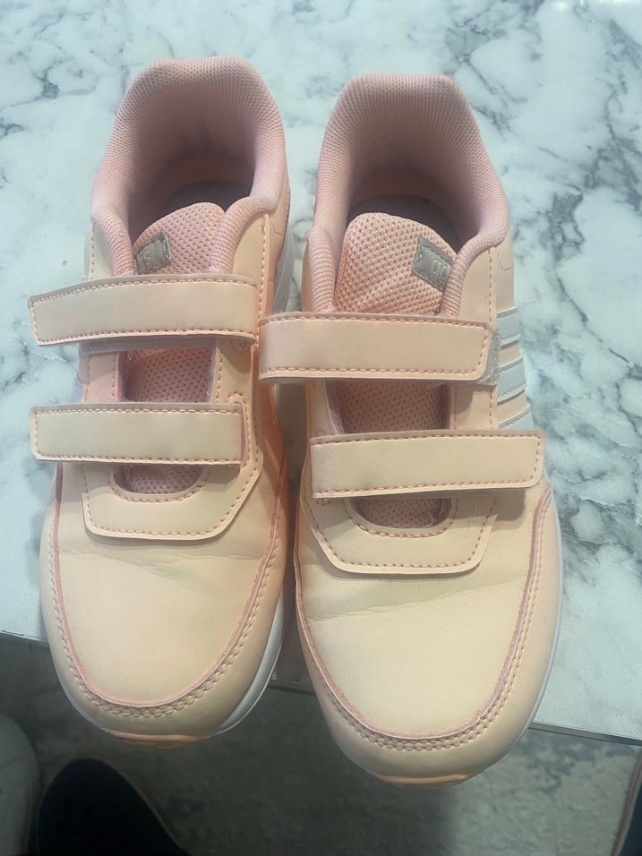 Pastel pembe renkli, cırt cırtlı, kauçuk tabanlı, desen içermeyen kız çocuk spor ayakkabısı. Çok temiz çok az giyildi resimdeki gibi