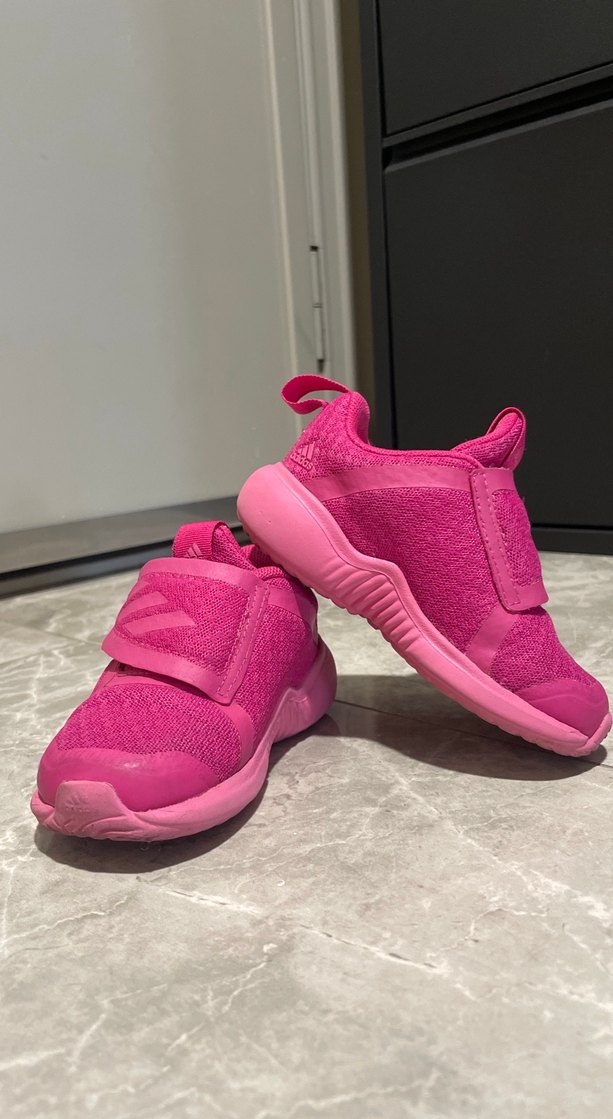 Pembe renkli kız çocuk spor ayakkabıları, cırt cırtlı bant ve kauçuk tabanlıdır. Renkli ve rahat bir kullanım sunar, desensiz ve normcore stile sahiptir.
