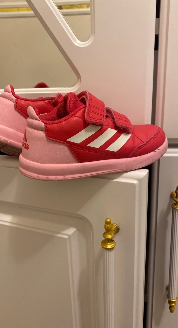 Pembe kız çocuk spor ayakkabısı, cırt cırtlı, lastik tabanlı ve renkli sokak stili desenlere sahip.