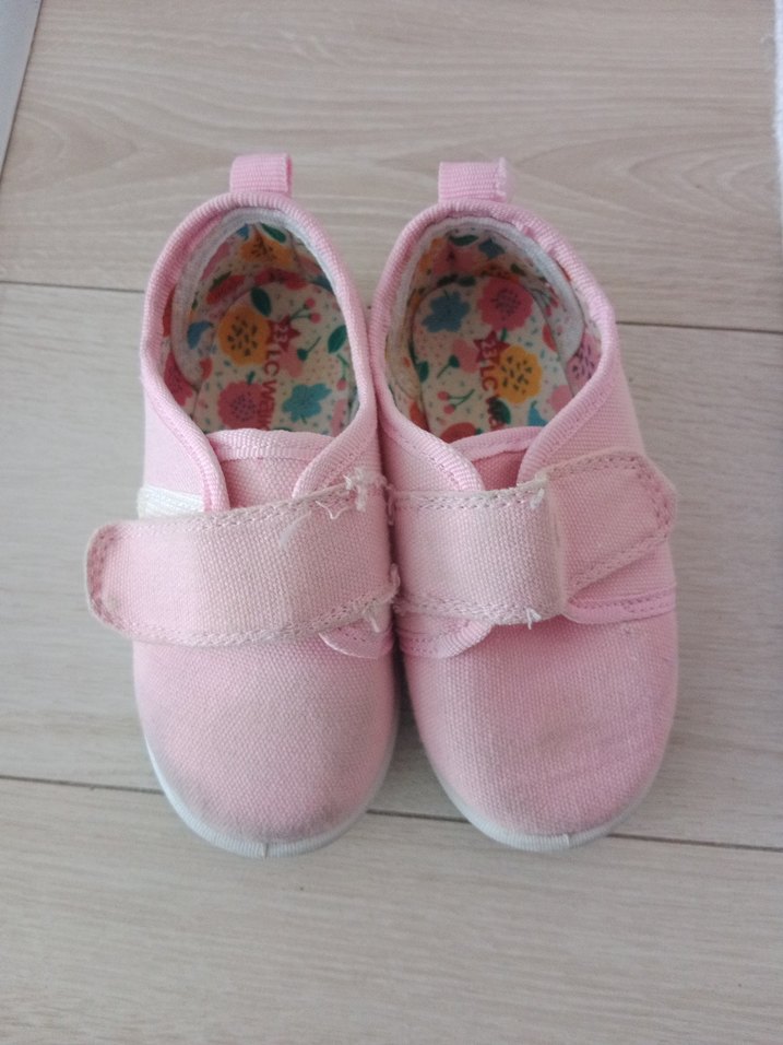 Pastel pembe renkli kız çocuk spor ayakkabısı, kolay kapanan cırt cırtlı bant ve kauçuk tabanlıdır. Düz ve desensiz sade bir tasarıma sahiptir.