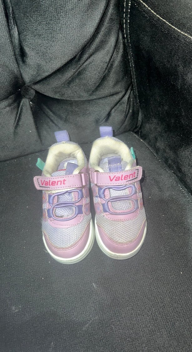 Pastel pembe renkte, cırt cırtlı kapamalı, kauçuk tabanlı kız çocuk spor ayakkabısı. Valent markalı, desen içermeyen sokak stiline uygun rahat model.