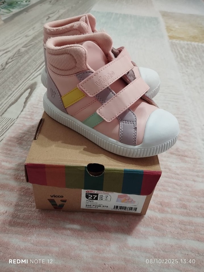Pembe renkli, cırt cırtlı ve baskılı desenli kız çocuk spor ayakkabısı. Kauçuk tabanlı, sokak stili için uygun, rahat ve trend görünümlü.