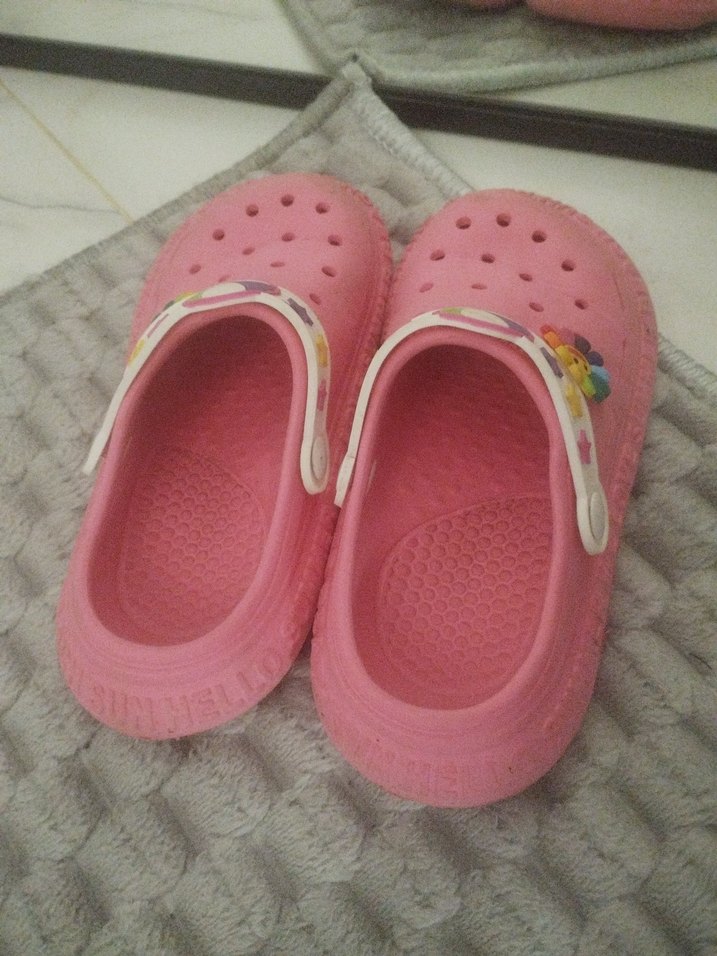 Pembe renkli, kauçuk malzemeden yapılmış kız çocuk terliği. Cırt cırtlı bant ve sade, desensiz tasarıma sahiptir. Rahat ve kullanışlıdır.