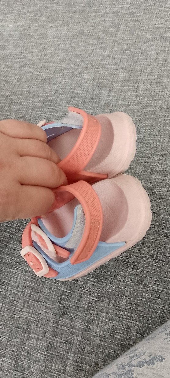 Yumuşak kauçuk malzemeden pembe kız çocuk terlikleri, pastel tonlarda. Kolay giyilmesi için cırt cırtlı bantlı, sade tasarımlı.