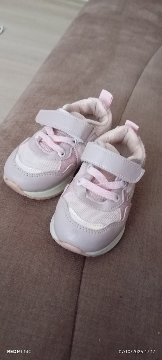 Pastel pembe renkte, cırtcırtlı bantlı ve kauçuk tabanlı kız çocuk spor ayakkabısı. Düz ve sade tasarıma sahiptir.