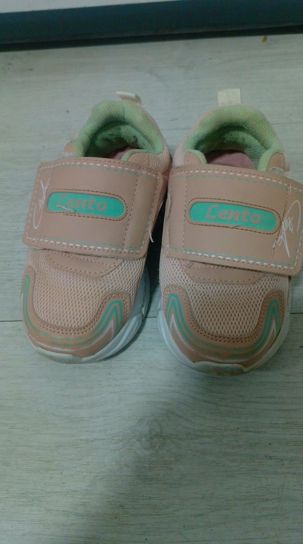 Pastel pembe renkte, cırtcırtlı bantlı ve kauçuk tabanlı kız çocuk spor ayakkabısı. Desensiz, rahat sokak stili için uygun.