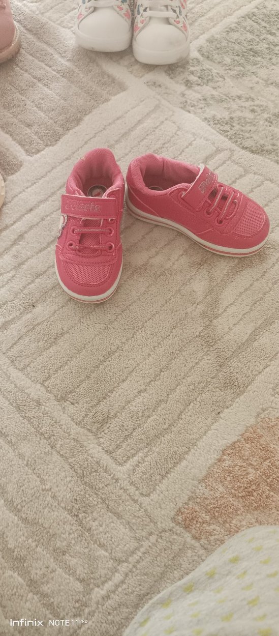 Pembe kız çocuk spor ayakkabısı, cırtcırtlı ve kauçuk tabanlıdır. Desensiz, renkli ve sade sokak stili için uygundur.