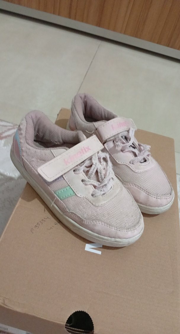 Kız çocukları için pastel pembe renkte, cırtcırtlı kapanışlı spor ayakkabılar. Kauçuk tabanlı ve desen içermeyen sade tasarıma sahiptir.