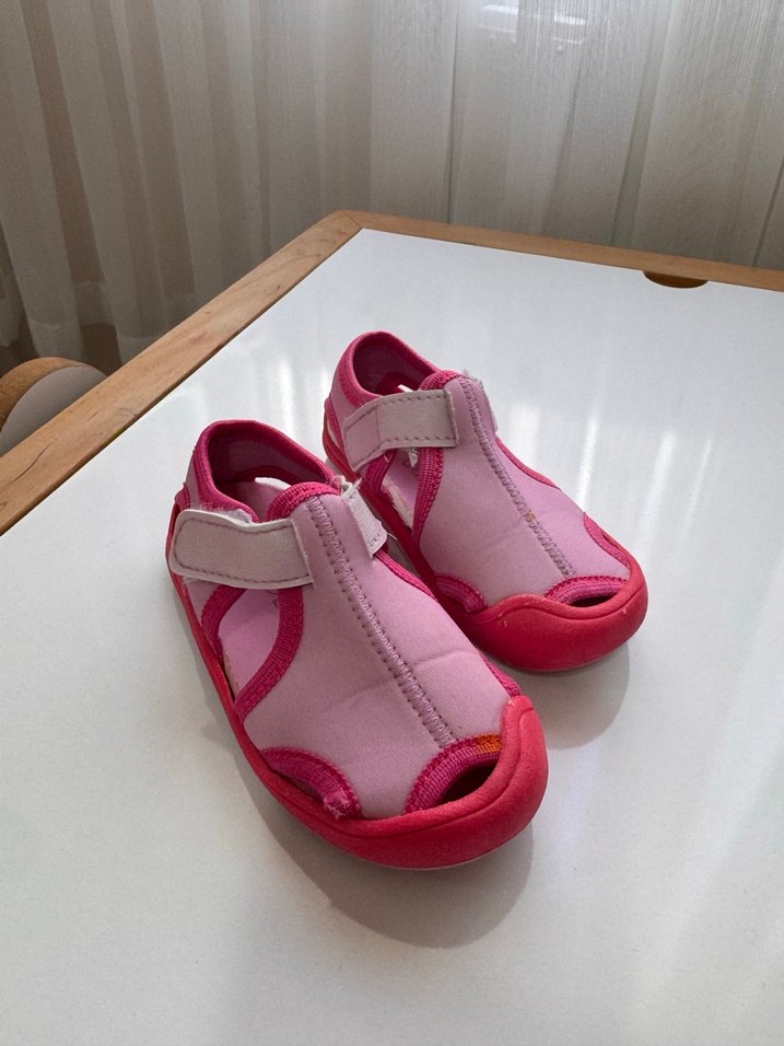 Pembe renkli, kaymaz tabanlı ve cırt cırtlı kız çocuk terliği. Sokak stili için pastel tonlarda, desensiz tasarım. Kreşte giyildi 24-25 fakat 22-23 uygundur