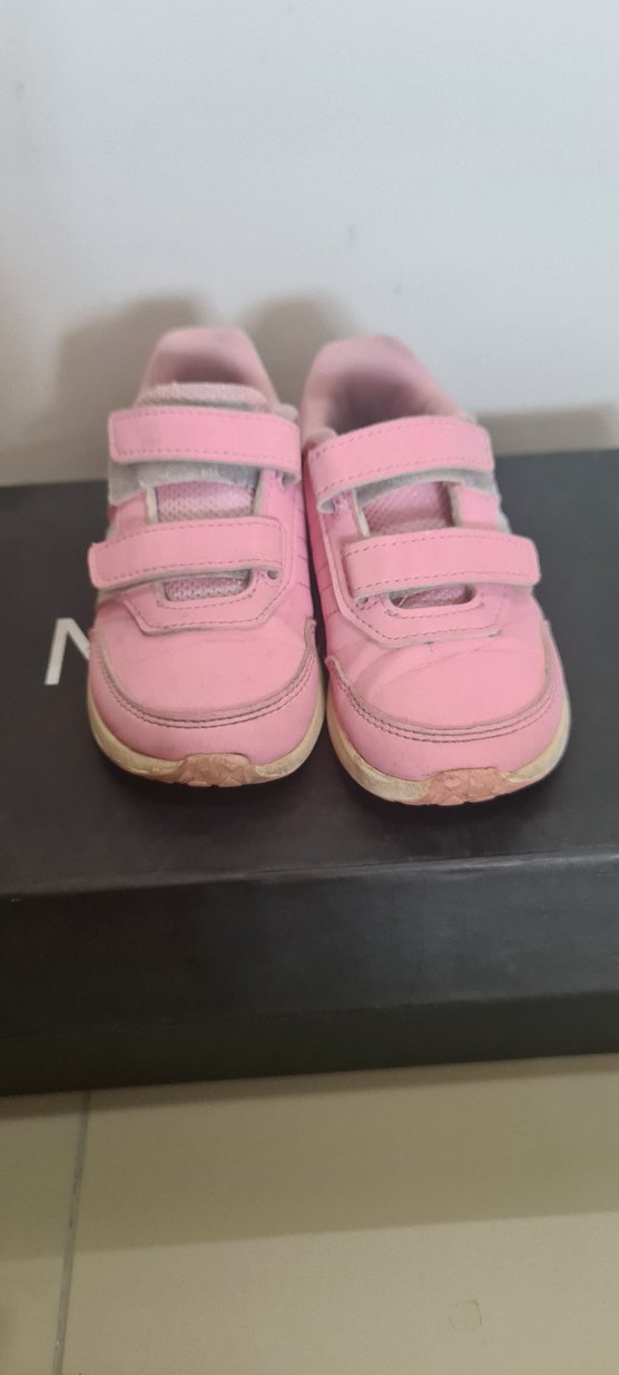 Pembe renk, cırt cırtlı ve kauçuk tabanlı kız çocuk spor ayakkabısı. Düz, pastel renkte ve desensiz, sokak tarzı için uygun.
