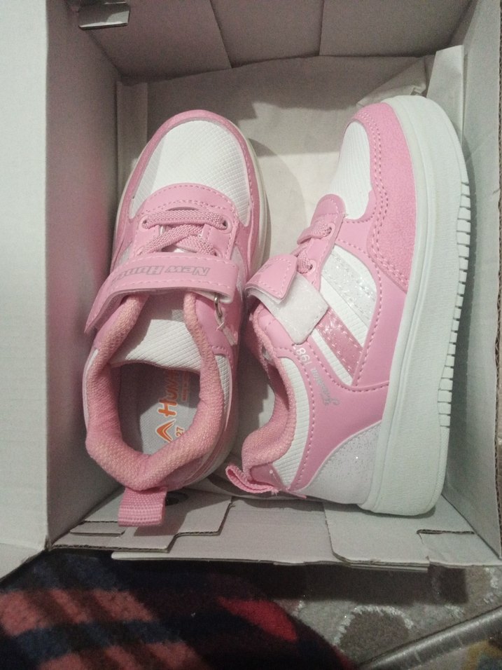 Pastel pembe kız çocuk spor ayakkabısı, baskılı detaylı ve cırtlı kapanışlıdır. Kauçuk tabanlı, trend sokak tarzına uygundur.