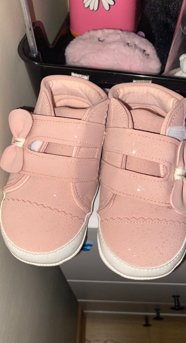 Pastel pembe renkli, cırt cırtlı kız çocuk spor ayakkabısıdır. Kauçuk tabanlı, desensiz ve şık fiyonk detayları bulunur.