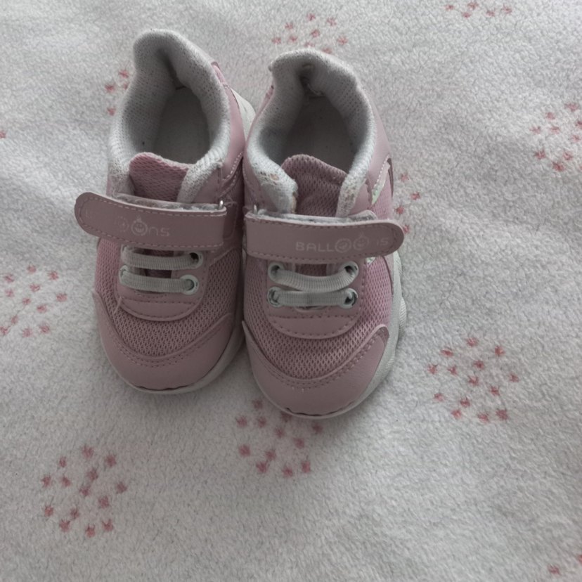Pembe tonlarda, cırtlı kapamalı, kauçuk malzemeden yapılmış, desensiz kız çocuk spor ayakkabısı.