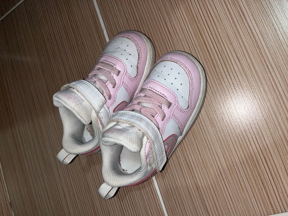 Pastel pembe renkli, cırt cırtlı, lastik tabanlı kız çocuk spor ayakkabısı, rahat sokak stiline uygun.