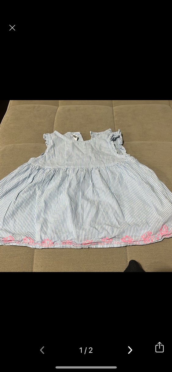 Kız çocukları için pastel pembe çizgili, fırfırlı, askısız yakalı, bol kesim elbise. Bohem tarzda, tekstil malzemeden üretilmiştir.