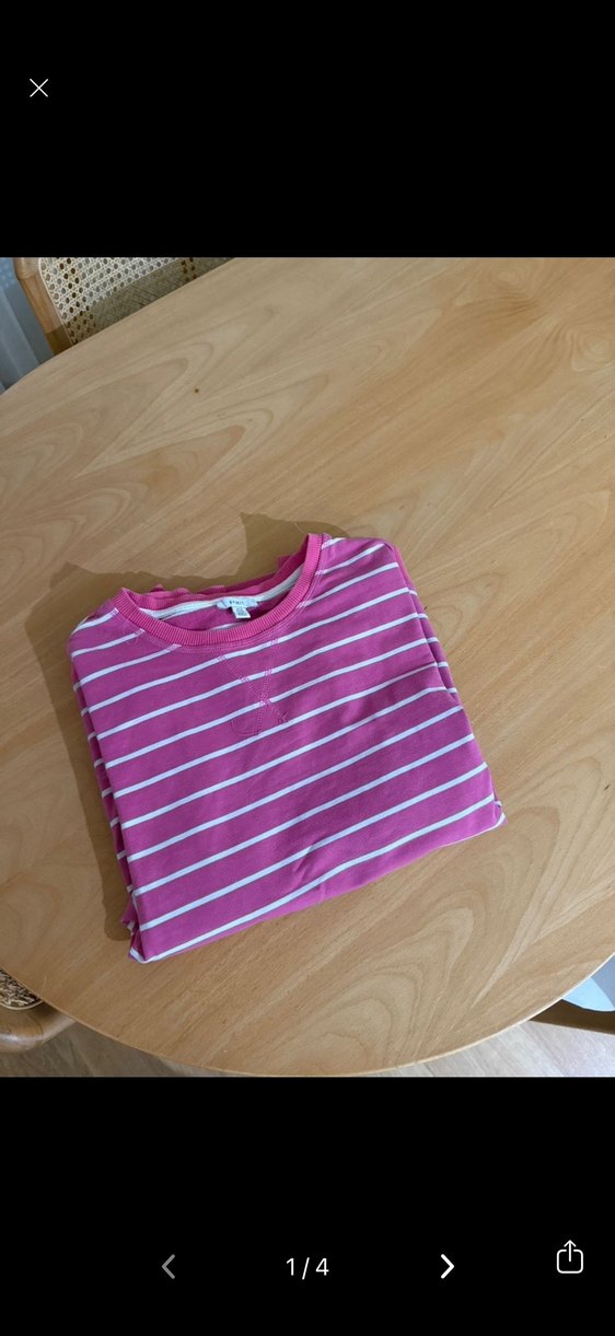 Pamuklu, kısa kollu, yuvarlak yakalı kız çocuk tişörtü. Gevşek kesim ve pastel pembe-beyaz çizgili, rahat sokak stili için uygun.
