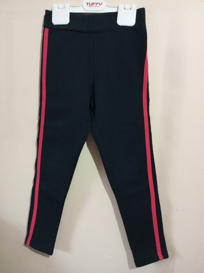 Elastik belli, pembe çizgili ve yumuşak, sıcak kumaştan kız çocuk taytı. 4-5 yaşa uygun sıfır ayarında.
