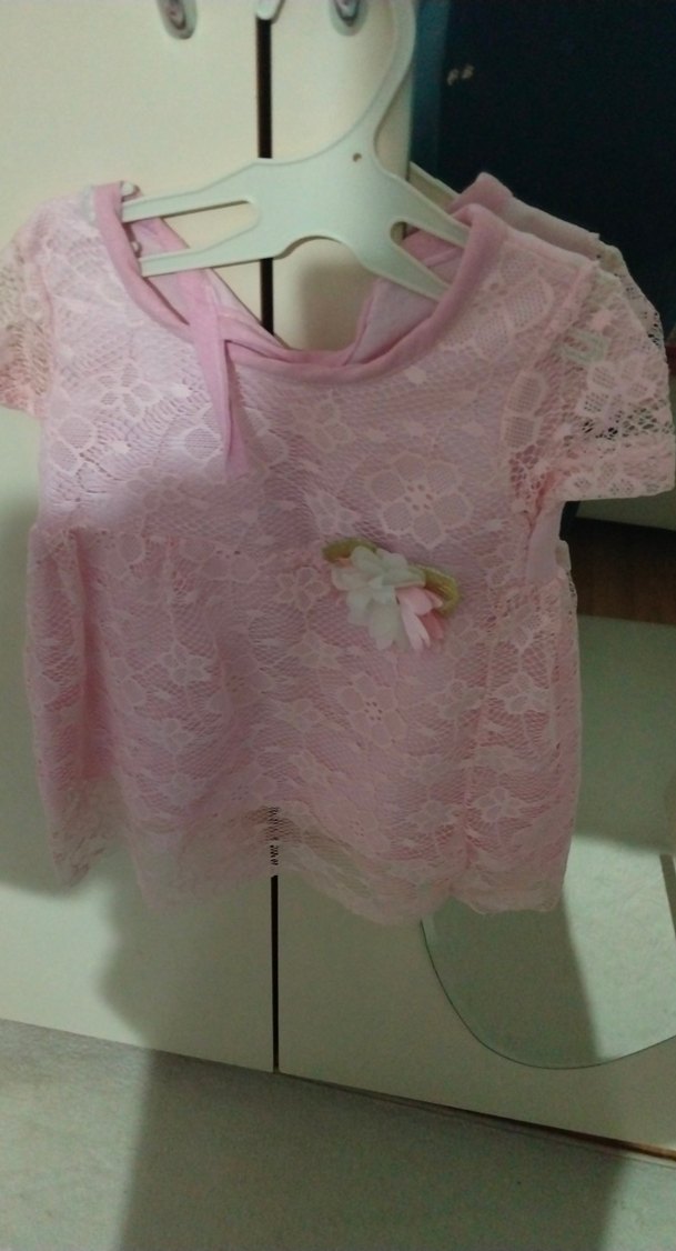 Kısa kollu, pastel pembe dantelkumaştan bohem tarzda çok guzel çocuk elbisesi.