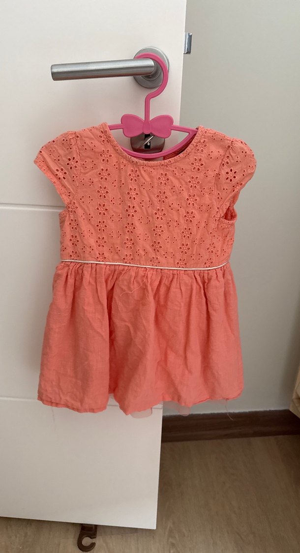 Kız çocukları için kısa kollu, dantelli işlemeli ve rahat kesimli pembe elbise, yumuşak tekstil kumaştan yapılmıştır. 1 kere düğünde giyildi 24 ay ve üzeri