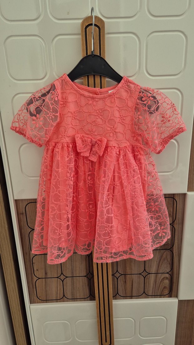 Kız Çocuk Pembe Dantel Kısa Kollu Elbise