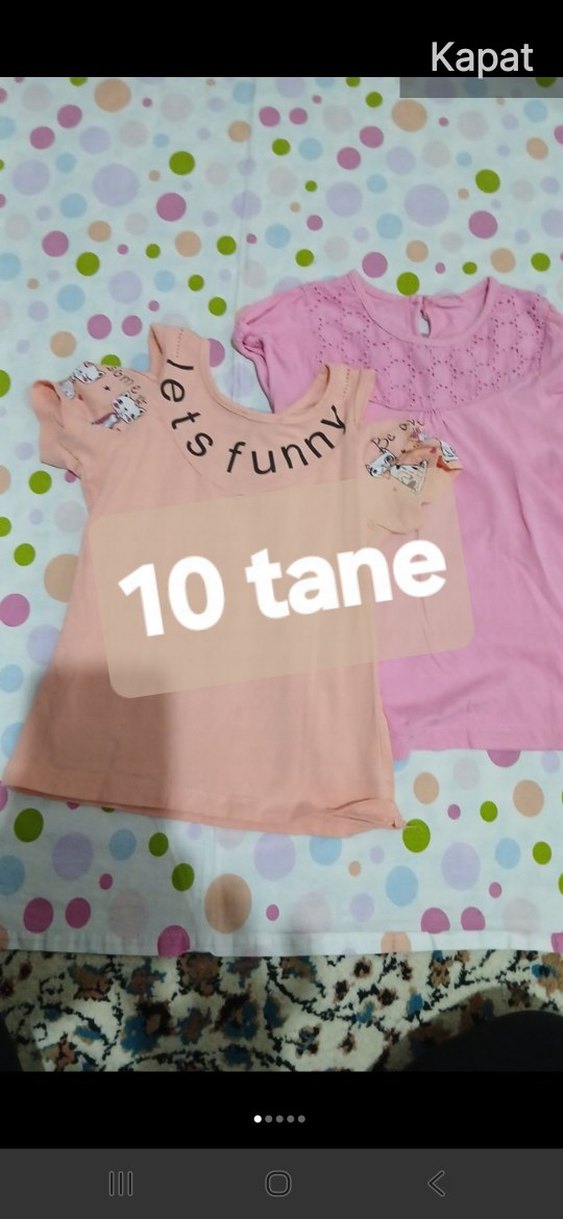10 tane tşört Kız çocuklar için kısa kollu, yuvarlak yakalı ve dantelli detaylara sahip bol kesim tişört.