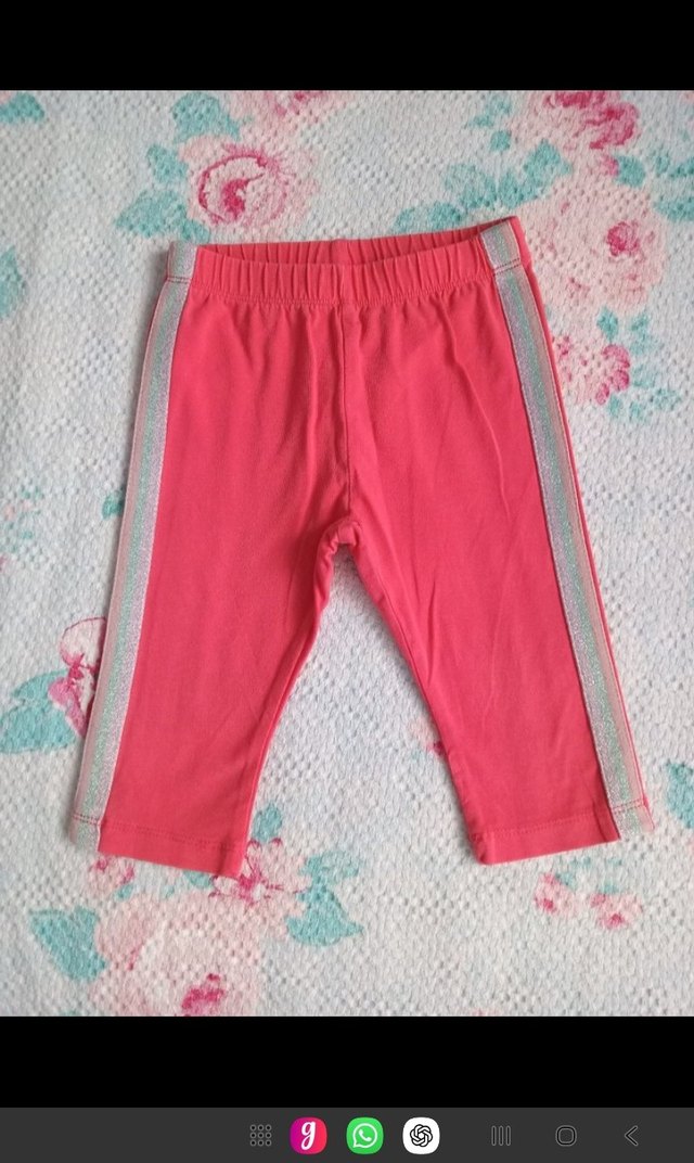 Sentetik kumaştan yapılmış, yan şeritli, lastikli beliyle pembe kız çocuk dar kesim tayt.