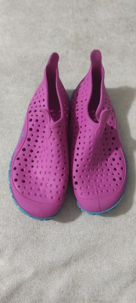 Pembe renkte, delikli tasarıma sahip, kiz çocuk için deni ve havuz ayakkabısı Günlük kullanım için uygun rahat ve renkli.