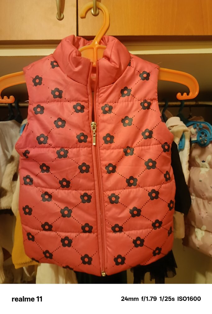 Pembe, çiçek desenli, fermuarlı, straplez yaka kız çocuk yeleği. Yumuşak ve sıcak kumaştan, şık ve rahat sokak stili için uygun.
