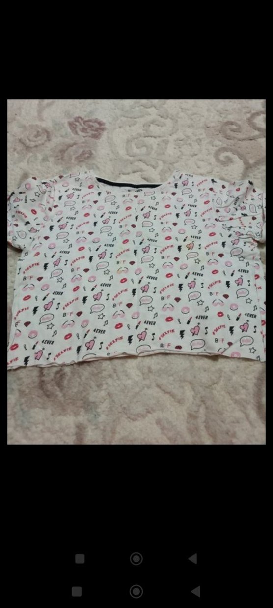 Kız çocuk tişörtü, kısa kollu ve yuvarlak yakalıdır. Pamuklu dokusu ve pastel pembe zemin üzerine baskılı desenleri ile düğme detayları bulunur. Rahat ve günlük stil için uygundur.