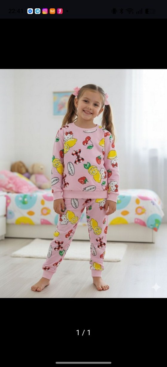Kız çocukları için yumuşak kumaştan, bol kesim, uzun kollu ve yuvarlak yakalı pembe desenli pijama takımı.rahat ve şık.ölçü sorabilirsiniz son 1 takım marka temsilidir karton etiketi yoktur