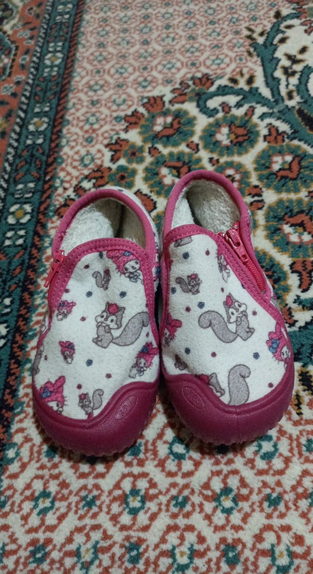 Pembe renkli, sincap desenli kız çocuk Panduf, kolay kullanım için cırt cırtlıdır. Yumuşak ve sıcak tutar. ️