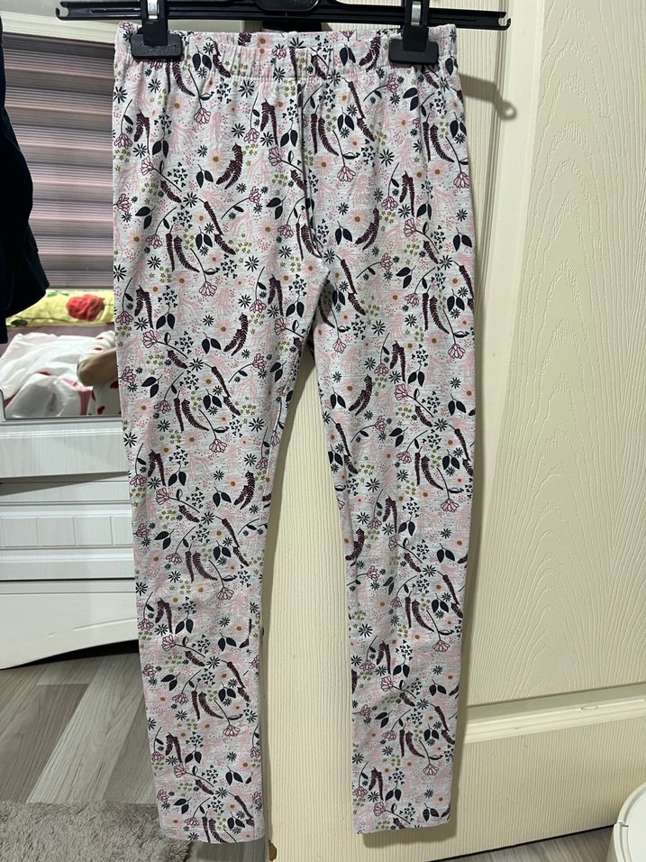 Sentetik kumaştan yapılmış, pastel tonlarda pembe desenli, dar kesim kız çocuk taytı. Trendy casual sokak stili için uygun. Sorunsuz 10 yaş uyumlu