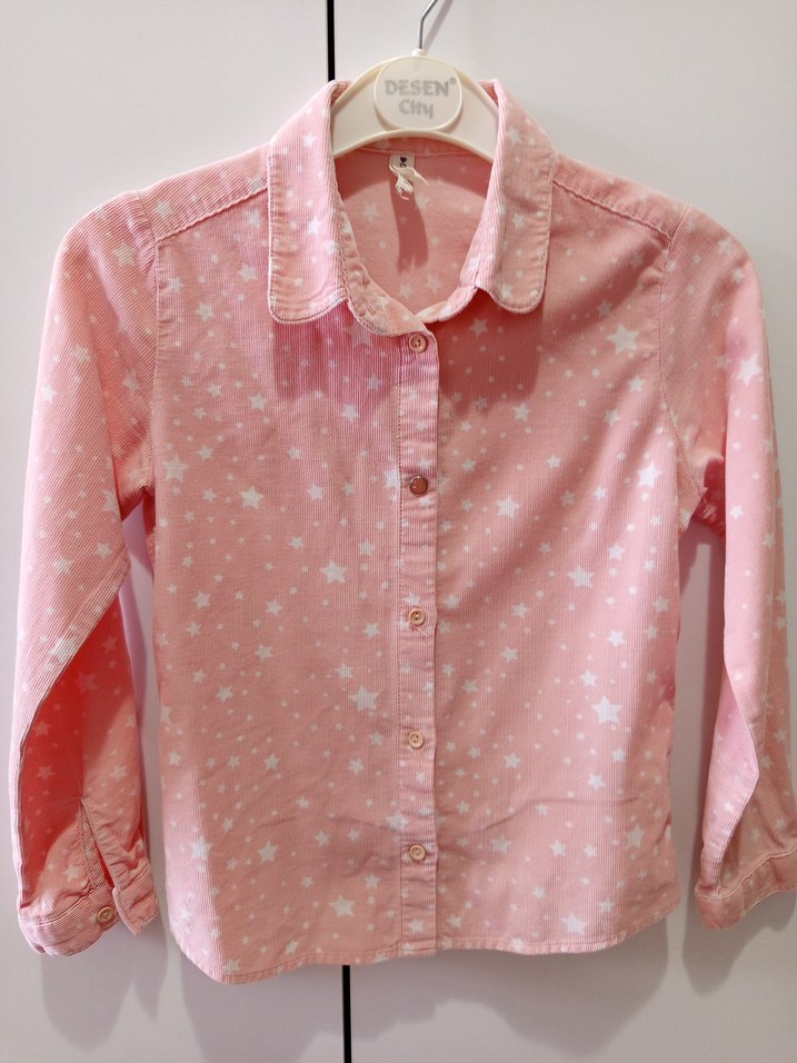 Pembe renkli, uzun kollu, düğmeli ve yakalı bu gömlek pamuklu kumaştan üretilmiş, rahat kesim ve yıldız desenlidir. Trendy sokak stili için uygundur.