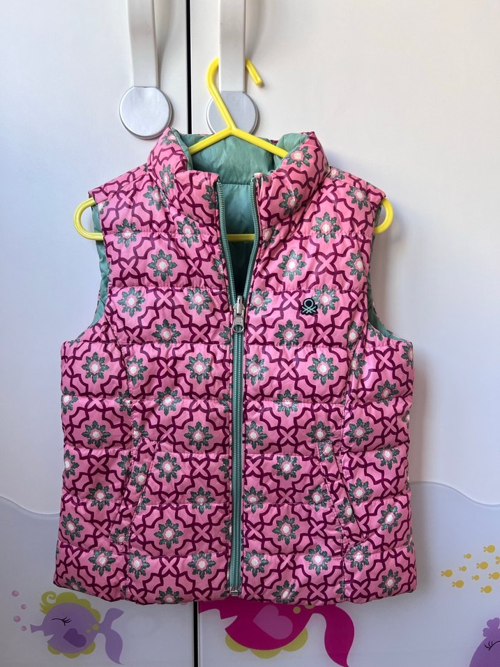 Kolsuz, yüksek yakalı ve fermuarlı bu kız çocuk yeleği, renkli tie-dye deseniyle retro ve bohem tarzı yansıtıyor. Yumuşak ve sıcak kumaştan üretilmiştir. Çift taraflı kullanıma uygundur.