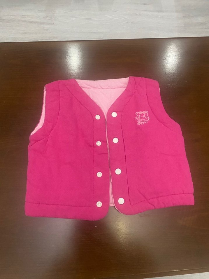Kız Çocuk Pembe Düğmeli çift taraflı Yelek
