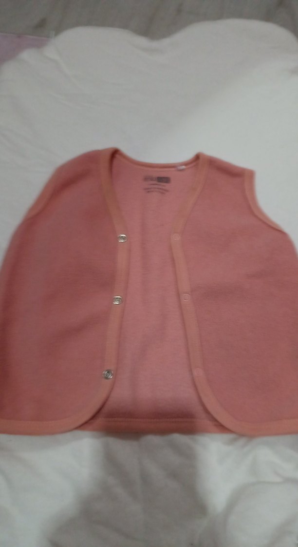 Kız çocukları için pembe, düğmeli, kolsuz yelek. Yumuşak ve sıcak kumaştan, rahat bir kesime sahip. Üst üste giymek için uygun.