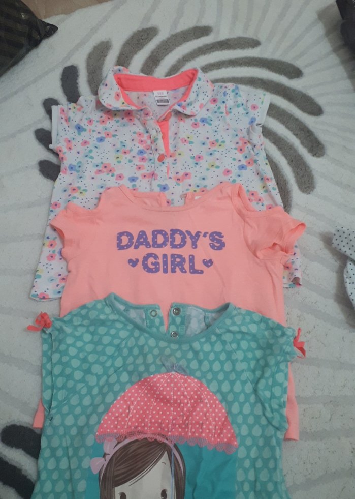 Pembe, pamuk kumaştan yapılmış, düğmeli polo yaka ve 'DADDY'S GIRL' baskılı, kız çocuklara uygun dar kesim tişört.