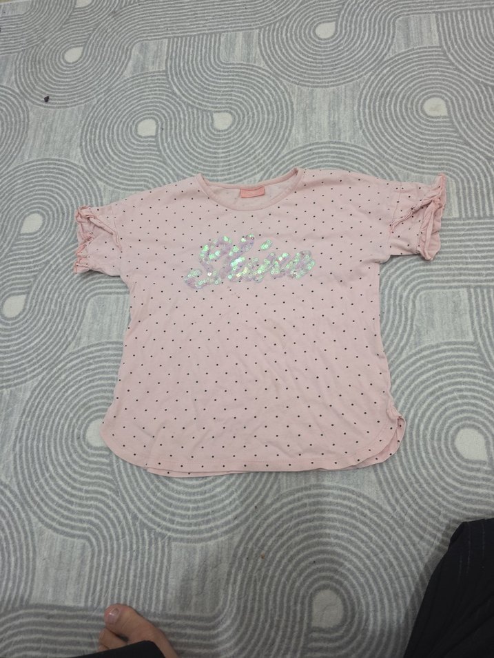 Pamuklu, kısa kollu, düğme detaylı pembe kız çocuk tişörtü. Gevşek kesim ve baskılı desenle rahat sokak stili sunar.